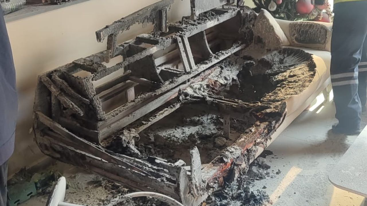 Yangın sonucu elektrikli soba, ikili koltuk, televizyon, kapı ve pencereler yanarak zarar görürken, duvarlarda da islenme oluştu.