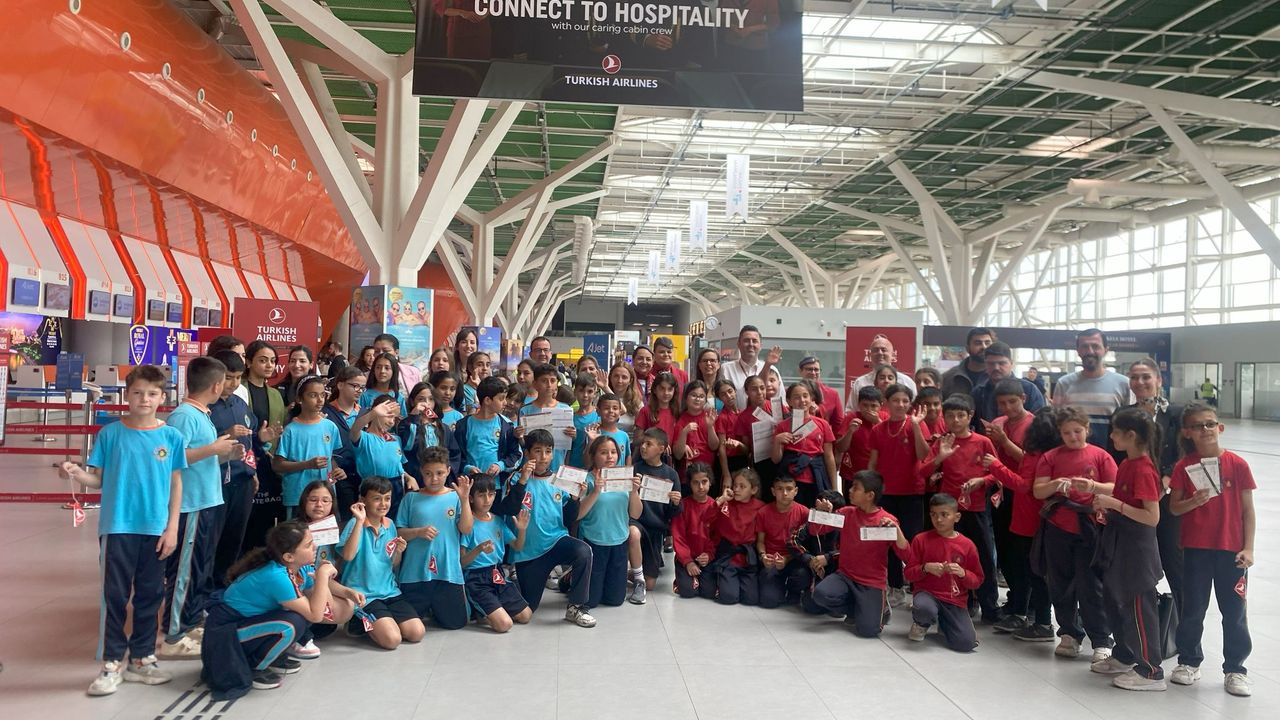 Balıkesir Meriç Merkez ilkokulu ile Arabahmet ilkokulu öğrencileri Ercan Havalimanı’nda ilk önce THY bilet satış ofisinden biletlerini aldı. Ardından checkin yaparak uçağa bindi. Çok heyecanlı ve mutlu oldukları her hallerinden belli olan çocuklar uçakta pilot ve kabin memurları ile sohbet etti . Uçakta çocuklara kutular içerisinde ikram ve hediyeler veriledi.