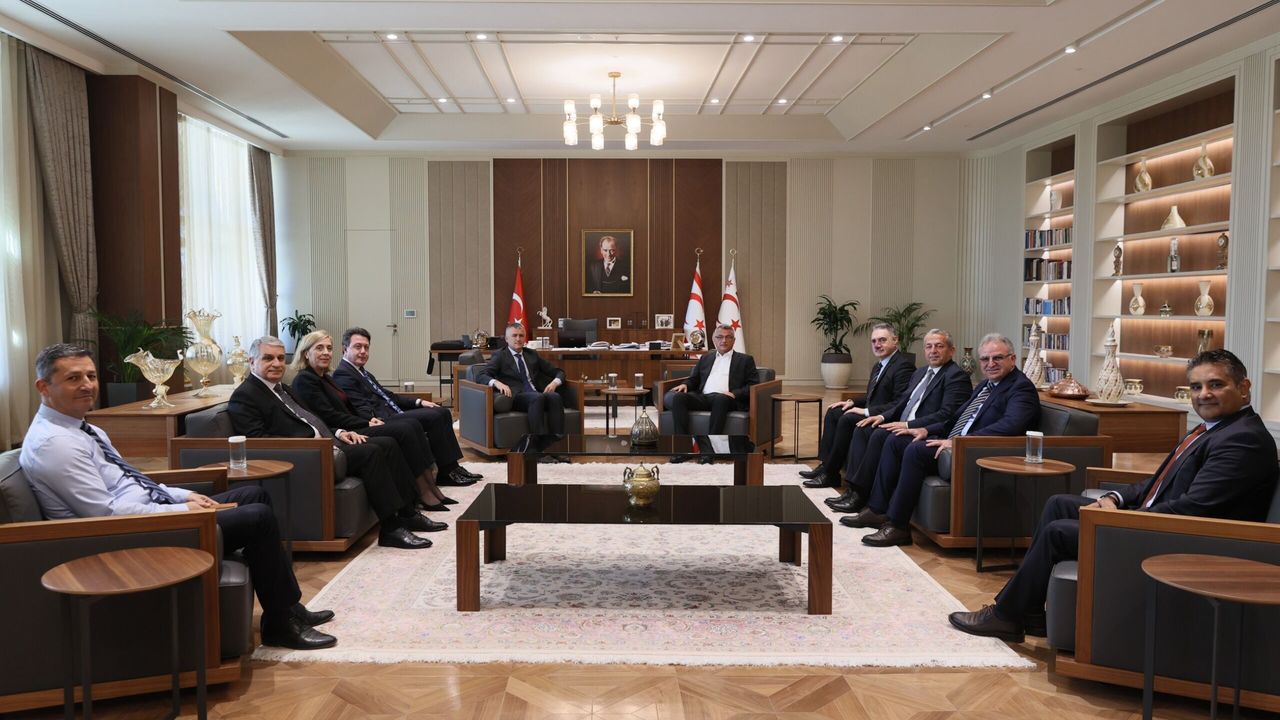 Cumhurbaşkanı Tufan Erhürman, Bankalar Birliği Başkanı Olgun Önal ve yönetim kurulu üyelerini kabul etti.
