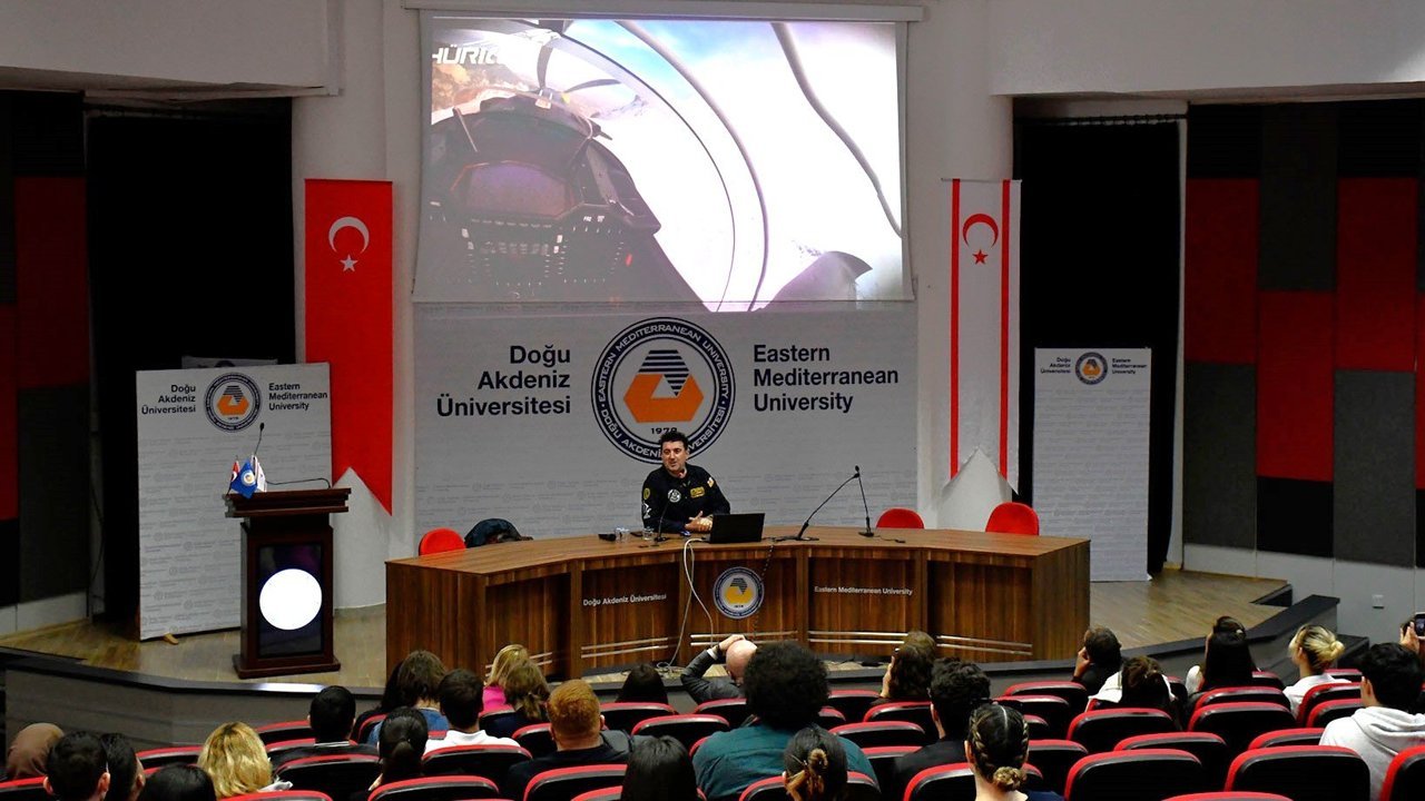 Doğu Akdeniz Üniversitesi (DAÜ) öğrencileri HÜRKUŞ’un ilk deneysel test pilotu Murat Özpala ile bir araya geldi.