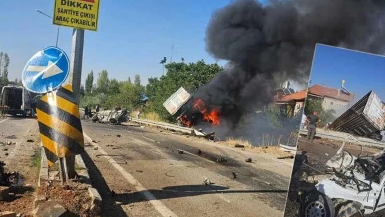Konya’da otomobille çarpışan tır çekicisi devrildi. alevlere teslim olan kamyonun sürücü ile diğer araçtaki iki kişi yaşamını yitirdi.
