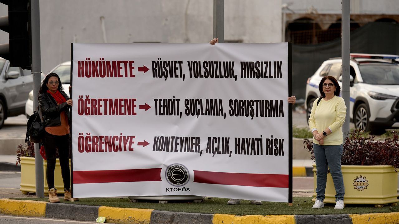 Kıbrıs Türk Orta Eğitim Öğretmenler Sendikası (KTOEÖS), "öğrencilerin konteyner ve inşaatlar içerisinde eğitim görmesi ve okulların güçlendirilmemesini" protesto etmek amacıyla Başbakanlık ışıklarında eylem yaptı.