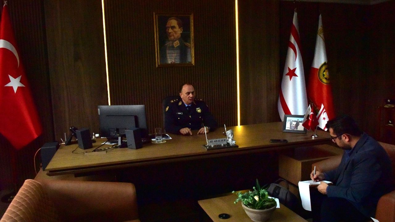 Türk Ajansı Kıbrıs (TAK) muhabirine açıklamalarda bulunan Polis Genel Müdürü Ali Adalıer, kamu düzeninin korunması, toplum huzurunun sağlanması ve vatandaşların güvenli bir ortamda yaşamlarını sürdürebilmeleri için yürütülen çalışmalar ile projelere değindi; 2025 yılına ilişkin veriler paylaştı ve gelecek döneme yönelik hedeflerini ortaya koydu.