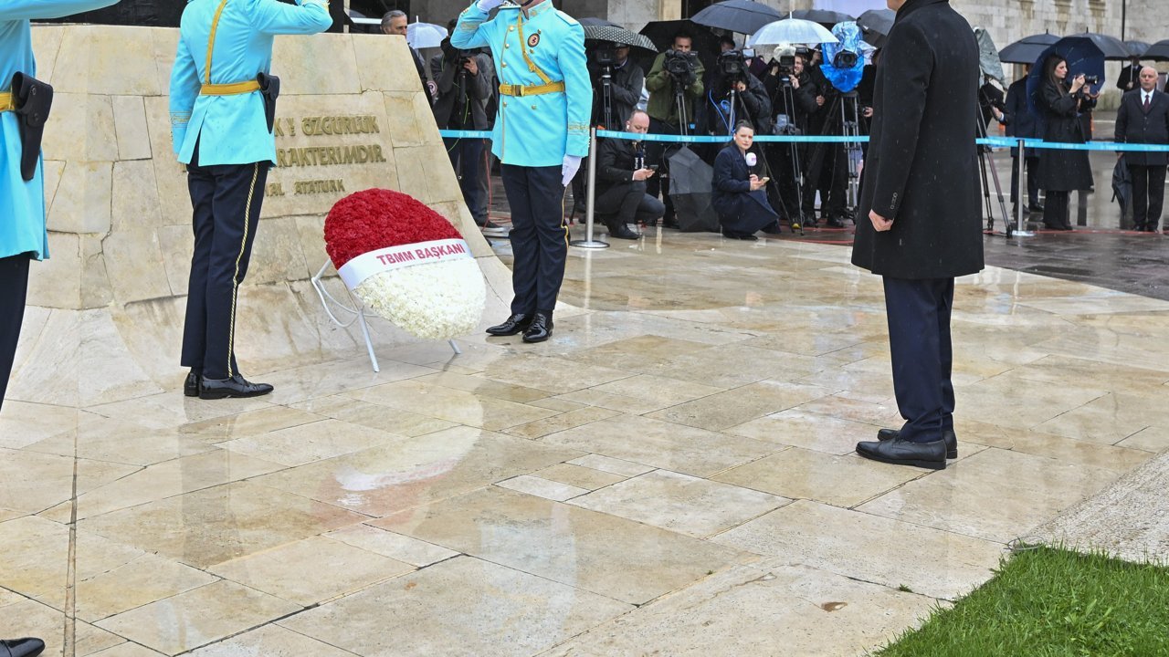 TBMM Başkanı Numan Kurtulmuş'un, Atatürk Anıtı'na kırmızı ve beyaz karanfillerden oluşan çelenk bırakmasının ardından saygı duruşunda bulunuldu, İstiklal Marşı okundu.