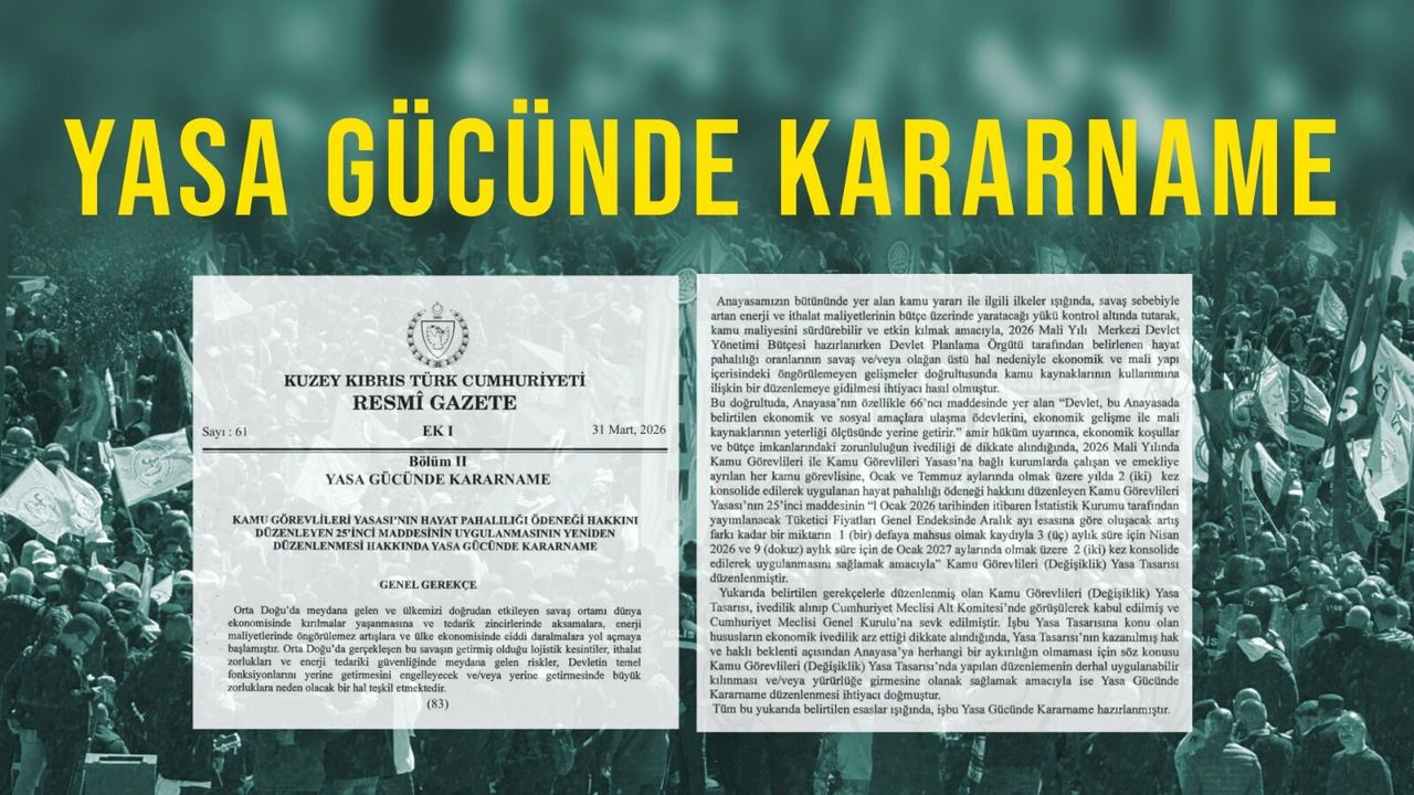 Yasa gücünde kararname, kamu görevlilerinin hayat pahalılığı ödeneğine dair değişiklikleri içeriyor. Düzenlemeye göre, ödenek 2026 yılı için Nisan ve Ocak 2027’de iki taksit halinde ödenecek.